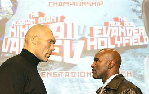 Holyfield will fight 2.13m WBA champion Nikolai Valuev next month, aiming to become the oldest man to claim a world heavyweight title and the first to win it five times.