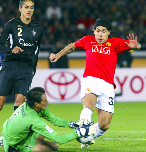 United though soon found their feet and Rooney chested down a through ball from Vidic just inside the box on 10 minutes and unleashed a fierce shot that goalkeeper Jose Cevallos did well to punch away.