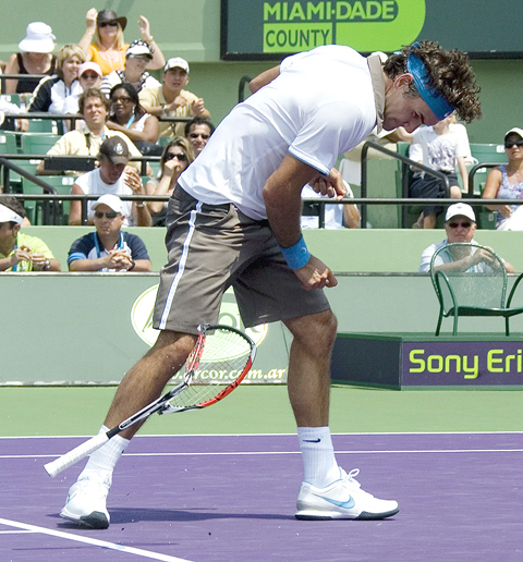 That span included four breaks of Federer’s serve, after he had surrendered his serve just once in the tournament and contributed to a rare glimpse of temper from the normally restrained Swiss, who broke a racquet after yet another forehand miss in the third game of the final set.