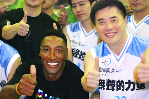 Greeting several hundred fans with a warm smile, Pippen said he was pleased to visit Taiwan for the second time in a year. The former US Olympic “Dream Team” player demonstrated his two-time Olympic gold-medalist skills in a session with Taipei Mayor Hau Lung-bin and Taiwan’s Deaflypics team, instructing them on shooting techniques.
