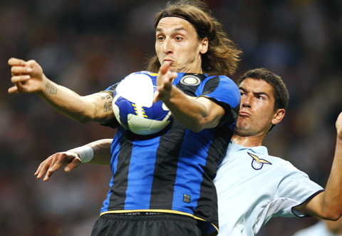 Ibrahimovic almost opened the scoring on 23 minutes when veteran Portuguese winger Luis Figo picked him out in the box with a pinpoint cross, but his header went just wide of the far post with Fernando Muslera well beaten in the Lazio goal.