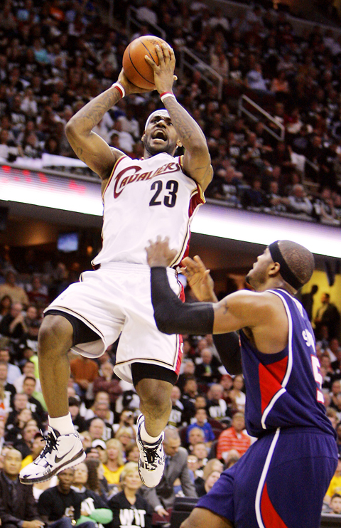 Cleveland’s James, who beat the Los Angeles Lakers’ Kobe Bryant and Dwyane Wade of the Miami Heat for the MVP honor on Monday, also had 10 rebounds, four steals and three assists as the well-rested Cavs turned around an early five-point deficit.