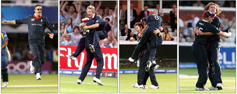 Needing 15 off the last three deliveries, Yusuf Pathan smashed Ryan Sidebottom straight for six off the first, but managed only a single off the next before Dhoni hit the last ball for four.