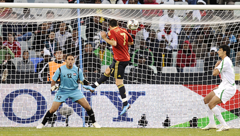 Coach Bora Milutinovic was true to his word as Iraq put 10 men behind the ball and played for a draw from the kick-off at Vodacom Stadium in Bloemfontein. The policy worked remarkably well against a team showing four changes from that which overwhelmed New Zealand 5-0 last Sunday until a glancing Villa header off a Joan Capedevila cross gave impressive Mohammed Kassid no chance.