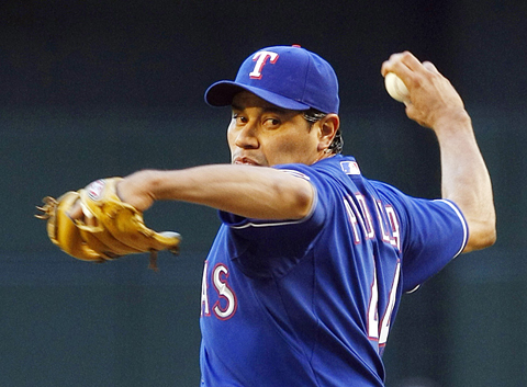 The Rangers right-hander worked his way through seven innings to win his third successive decision, while Haren posted his first loss after eight straight victories in interleague play despite striking out eight and allowing a miserly four hits.