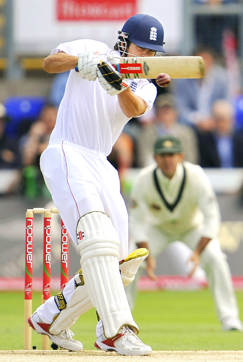 Left-hander Cook (10), playing loosely away from his body, saw Hussey hold a brilliant one-handed catch in the gully as he dived to his right.