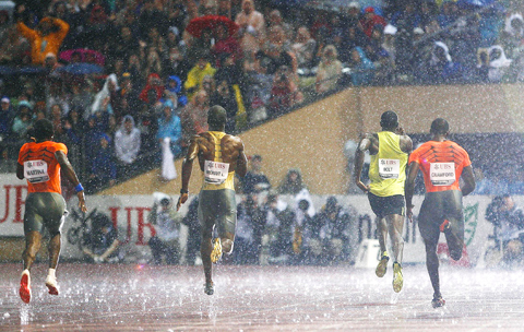 Bolt’s teammate Asafa Powell won the 100m in 10.07 seconds in what he described as a “good race” given the conditions.