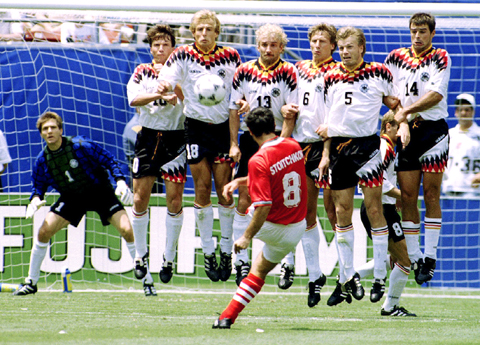 Stoichkov levelled the score by curling a rasping free kick that gave keeper Bodo Ilgner no chance in the 75th minute and Yordan Lechkov thundered home a perfect diving header three minutes later.