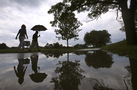 After three days of torrential rain, thunderstorms and lightning, officials had hoped they might dodge the miserable weather long enough to pack in 36 holes and crown the tournament’s 100th champion, but shortly after third-round play began ferocious storms again rumbled across Glen Abbey forcing another lengthy six-hour delay before play was finally suspended.