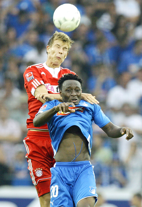 Josip Simunic thought he had headed Hoffenheim in front on 10 minutes, but the referee ruled his effort had not crossed the line. Instead, against the run of play, Bayern went in front on 25 minutes when Danijel Pranjic fed Ivica Olic for a neat close range finish.