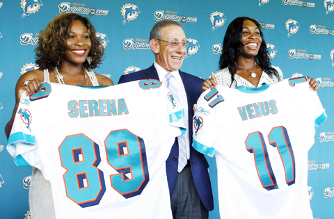 Venus said she and Serena have been to “a few games.” Serena dated former NFL players LaVar Arrington and Keyshawn Johnson, but the sisters said the Dolphins have long been their favorite team.