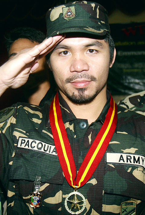 At army headquarters in Taguig City, Pacquiao, who was already a senior master sergeant in an army reserves division, was named a sergeant major. Philippine Defense Secretary Gilberto Teodoro and military chief General Victor Ibrado attended teh ceremony.