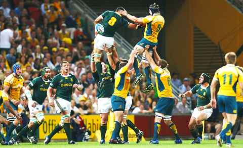 The South Africans had a great chance when centers Jean de Villiers and Jaque Fourie opened up the Australian midfield, but the Wallabies did well to scramble the ball clear close to the try-line.