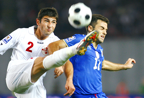 World champions Italy saw off Georgia 2-0 in Tbilisi to stay a point ahead of the Republic of Ireland in Group Eight thanks to a pair of own-goals from AC Milan defender Kakha Kaladze.