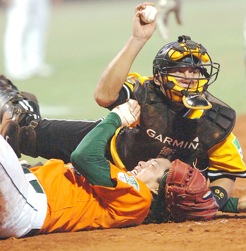 Cheng Nai-wen’s bases-loaded single with two outs in the bottom of the seventh broke a 3-all gridlock to give the Lions a 5-3 lead, only to see his bullpen return the favor in the very next inning as Kao Jien-san issued a single and a walk in the top of the eighth before Lin Yueh-ping served up a two-run single to Wang to tie the game at 5-all.