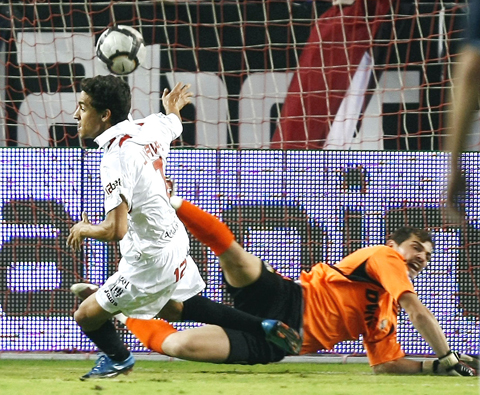 Jesus Navas headed Sevilla ahead on 33 minutes and the hosts should have scored more but for two wonder saves from Casillas.