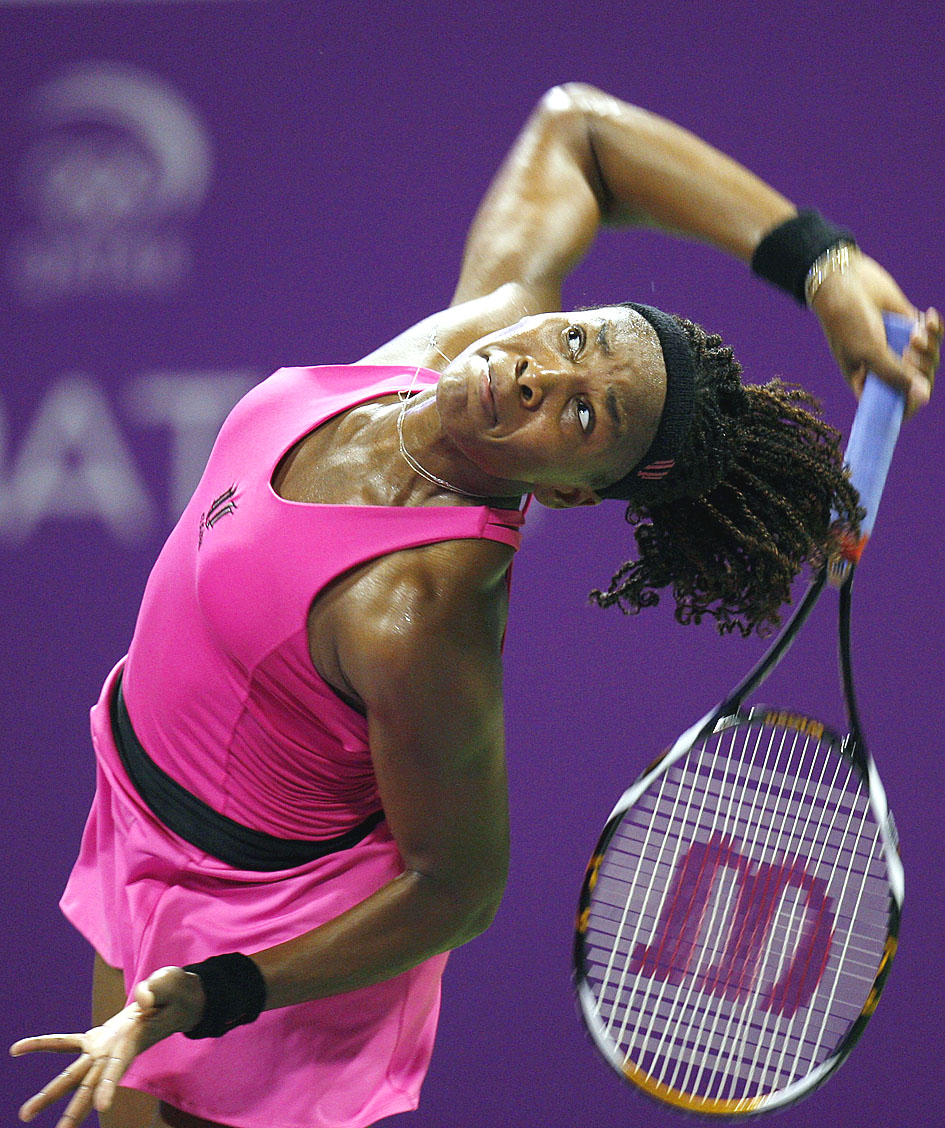 Venus Williams wilted in Qatar’s desert heat on Tuesday as feisty Russian Elena Dementieva staged a remarkable WTA Championships comeback to defeat the title-holder 6-3, 6-7 (6/8), 6-2.