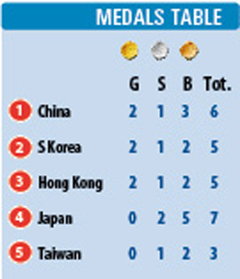 Host Hong Kong also had an impressive first day, winning two golds. While it is ruled by China, the former British colony fields separate teams in international sports events.