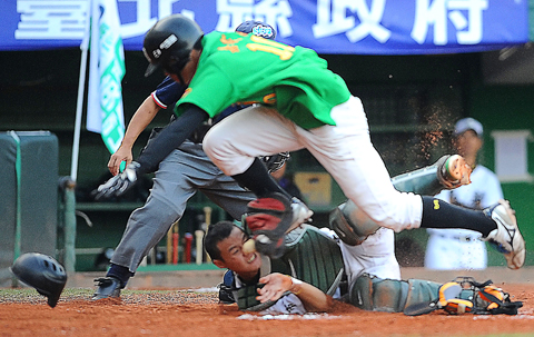 Wang Wei-chiang’s suicide squeeze with the bases loaded capped a two-run eighth that broke a 3-all deadlock and National Tung-shih held off a late-game rally by Nan Ying that brought them to within a run to escape with the big “W” in Sinjhuang (新莊), Taipei County.