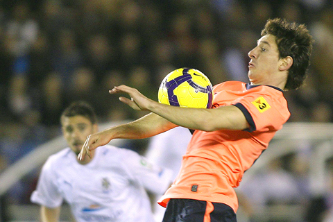Barca scored three times in a destructive nine minutes with Ballon D’Or winner Messi scoring two of them (36, 45) before clinching his hat-trick with a nonchalant curler late in the second half to join Valencia’s David Villa on 12 goals at the top of the goalscoring charts.