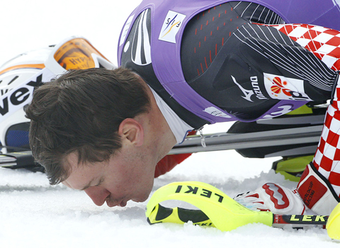 The 30-year-old Croat returned to action on Jan. 6, less than four weeks after undergoing arthroscopic surgery on his right knee. He is also troubled by constant back pain. Kostelic, the 2002 World Cup slalom champion, dropped to his knees and kissed the snow after arriving in the finish area.