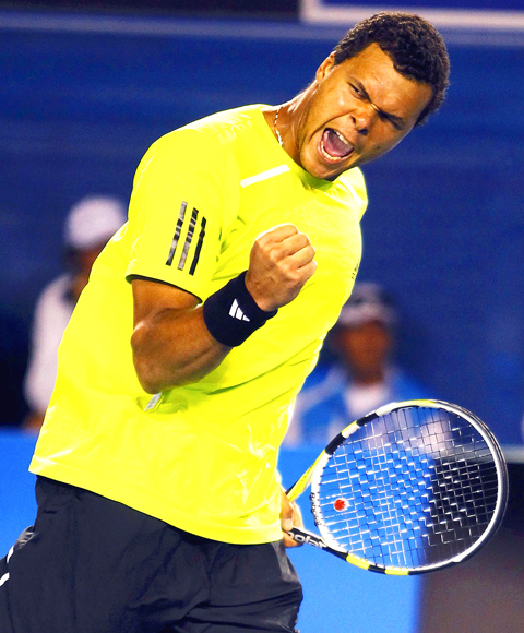 In yesterday’s other men’s quarter-final Jo-Wilfried Tsonga fought back from two sets to one down to beat third seed Novak Djokovic 7-6, 6-7, 1-6, 6-3, 6-1.