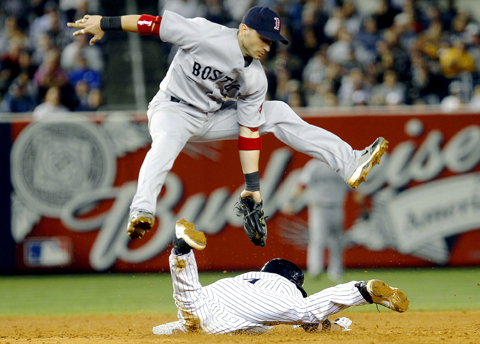 New York’s Javier Vazquez (2-4) got the win in an unfamiliar reliever role, striking out Kevin Youkilis with runners on the corners for the final out of the ninth.