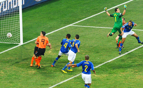 Also vital was Maarten Stekelenburg’s astounding save of Kaka’s shot on 31 minutes. Had it gone in, it would have been curtains for the Netherlands, giving Brazil a 2-0 lead.