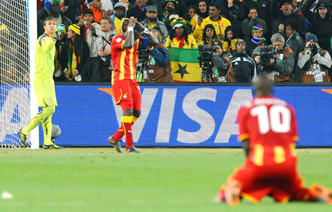 Ghana striker Asamoah Gyan’s penalty miss in the dying seconds of extra time against Uruguay on Friday cost the African side a place in the World Cup semi-finals and broke hearts across the continent.