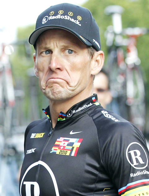 On Sunday, his RadioShack team was temporarily barred from starting for wearing an improper jersey — and the race started about 15 minutes late as a result.
