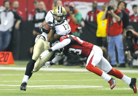 Atlanta took the lead when defensive lineman Chauncey Davis intercepted a Brees shovel pass and ran 26 yards for the score.