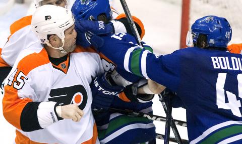 Ryan Kesler scored twice early in the second period and the Flyers responded by replacing goalie Brian Boucher. Kesler added an assist in the third.