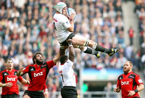 A crowd of 35,094 helped raise funds for the Christchurch, New Zealand, earthquake relief effort and the Crusaders treated them to a scintillating display of running rugby in a first half in which they ran in four tries after the Sharks had got over the line first when second row Willem Alberts scored from short range.