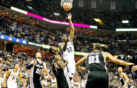 Spurs veteran Tim Duncan finished off the second quarter with a dunk that cut Memphis’ halftime lead to 46-43. Duncan, who turns 35 on Monday, has won four NBA titles with San Antonio.