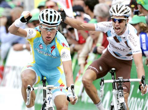 The stage win allowed Vinokourov, winner of the Vuelta a Espana in 2006, to move up to second overall, 32 seconds behind Russia’s Pavel Brutt.