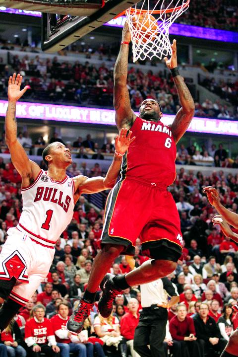 Dead-locked at 73-73 late in the fourth and the Bulls on the charge, James took over, scoring nine of Miami’s final 12 points to earn the Heat a split in the Windy City.