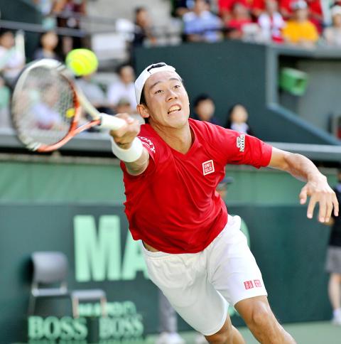 In Tokyo, Japan stormed back into the Davis Cup World Group for the first time in nearly three decades after Kei Nishikori defeated Vishnu Vardhan to give the hosts an insurmountable lead over India.