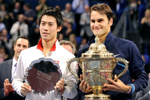 The Japanese had his only break point in the ninth game, but Federer saved it and went on to finish off the match with a forehand smash.