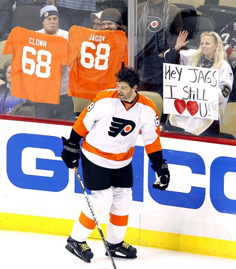 Jagr, who spent the first 11 years of his career with the Penguins, broke a 1-1 tie with his 12th goal of the season to give the Flyers the momentum in the second period.