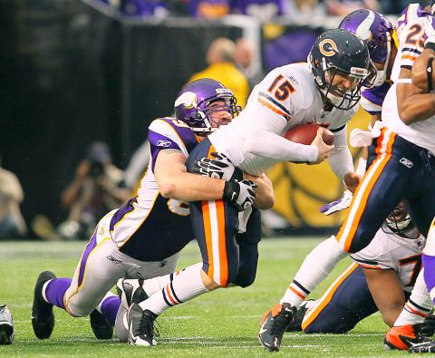In Minneapolis, Charles Tillman’s interception return in the second quarter gave Chicago (8-8) the lead, allowing the Bears to stop their five-game losing streak despite three-and-a-half sacks by Jared Allen.