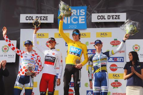 Completing the Paris-Nice podium were Dutchman Lieuwe Westra, eight seconds behind Wiggins, and Spaniard Alejandro Valverde, one minute, 10 seconds back.