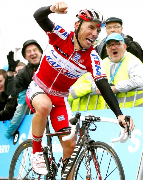 Sergio Luis Henao of Colombia and Robert Kiserlovski of Croatia both crossed the line 12 seconds later, while Lars Petter Nordhaug of Norway led a group 16 seconds behind in fifth.