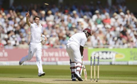 Darren Bravo later drove at Anderson without moving his feet and was caught by second slip Graeme Swann.