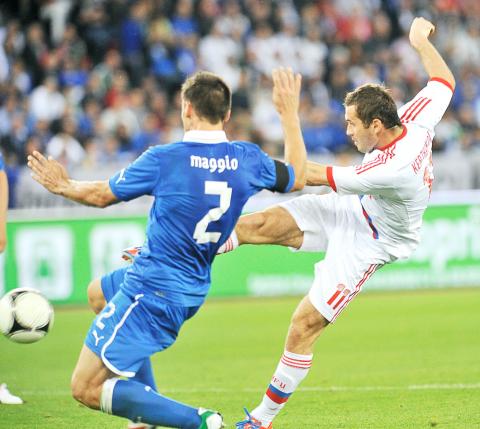 Italy had created more chances in the opening hour, but their rearguard always looked shaky and they fell to pieces when Russia, who could have scored three times ahead of the break, went ahead through Alexander Kerzhakov just before the hour.
