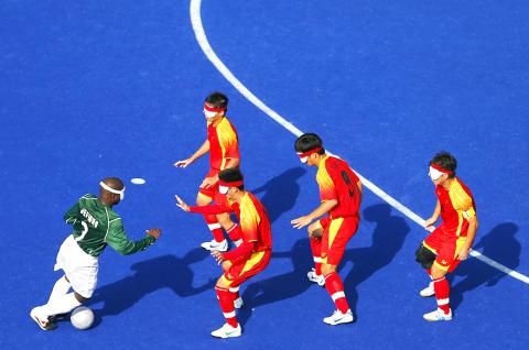 The three-versus-three sport, played with two giant goals at each end, sees players roll a ball with two bells in it. The defending players react to the sound and try and keep the ball out.