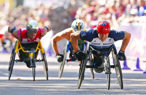 And he completed his clean sweep of golds yesterday, timing his sprint finish to perfection to win the wheelchair marathon in blazing sunshine along the streets of the capital in 1 hour, 30 minutes, 20 seconds.