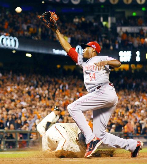 Cuban left-handed relief ace Aroldis Chapman entered for the Reds in the ninth and surrendered a single and two walks to load the bases with one out.