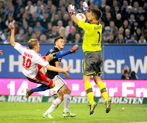 Hamburg defender Dennis Diekmeier dispossessed Ibrahima Traore in the penalty area, before the outstanding Sven Ulreich made saves from Maximilian Beister, Van der Vaart and Rudnevs. Son Heung-min then wasted the next chance from a rebound.