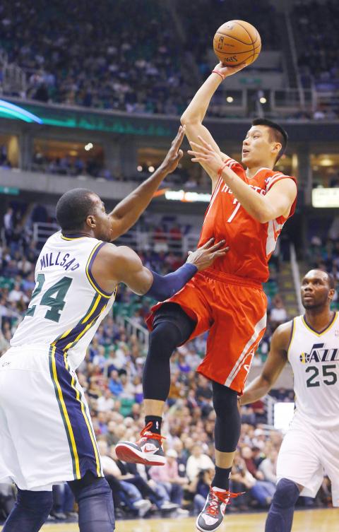 The Utah Jazz got 15 points from reserve Gordon Hayward and 14 from Al Jefferson in their 102-91 win over Jeremy Lin and the Houston Rockets on Monday.