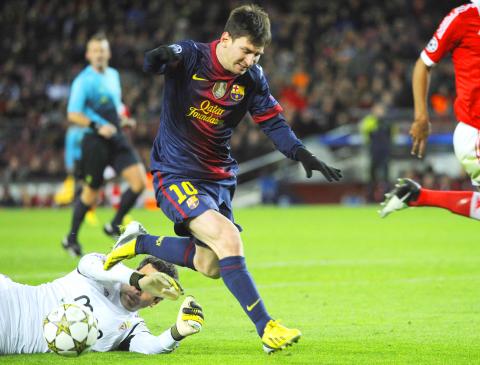 SL Benfica missed out on a place in the UEFA Champions League round-of-16 when they drew 0-0 at Barcelona on Wednesday in a match overshadowed by the sight of substitute Lionel Messi leaving the pitch on a stretcher.